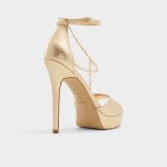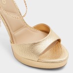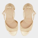 Molten-gold snakeskin and a glimmering ankle chain set the stage, while a sky-high stiletto balanced by a hidden platform lets you float through entrances with surprising comfort and that can't-miss, camera-flash confidence. Pair with a minimal slip dress for rooftop receptions, or swap in tailored jumpsuits when cockt
