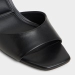 Supple black leather drapes the foot with an elastic slingback and sculpted stiletto heel, offering smooth confidence and cushioned comfort for rooftop goodbyes. Pair with tailored trousers for client brunches, or swap under a slip dress when city lights call for late tapas as the evening unfolds.