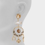 Golden chandelier hoops featuring horseshoe, clover, and chili charms create good vibes beneath baroque pearls and smoky crystals, catching the light as you move. Frame them with a satin slip for rooftop birthdays, or top a cozy knit on campus coffee runs to keep the glow going.