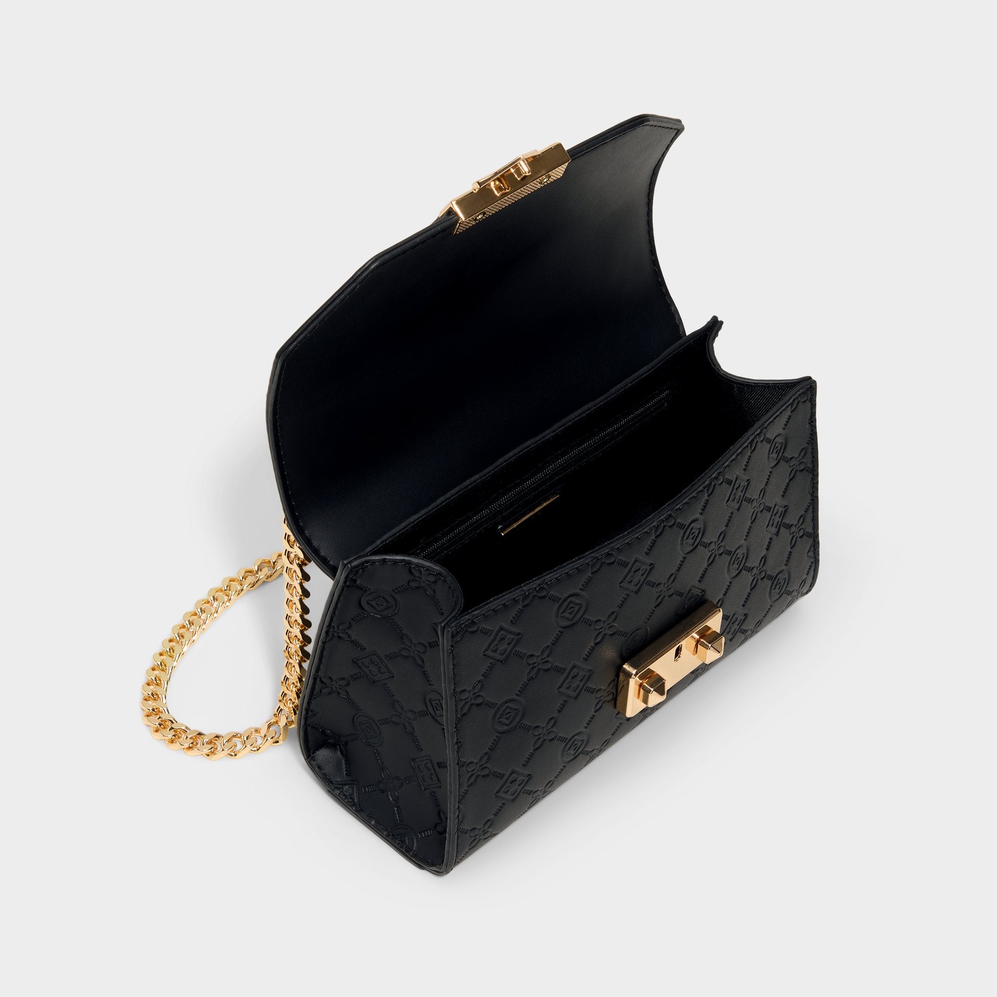 Midnight-black quilted synthetic?leather frames a geometric flap crowned by a bold gold push-lock, giving this structured crossbody city-polish with a whisper of glam that travels from desk to dinner. Carry it with a satin slip for rooftop dinners, or sling it over blazer-and-jeans for city coffee runs.