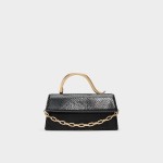 Midnight snake-embossed texture pairs with a sculptural gold handle to give this micro evening bag instant city-sleek glamour, and it shifts from a statement clutch to hands-free sparkle with effortless ease. Carry it with a satin slip for rooftop toasts, or sling it over a crisp blazer with jeans for after-dark polish