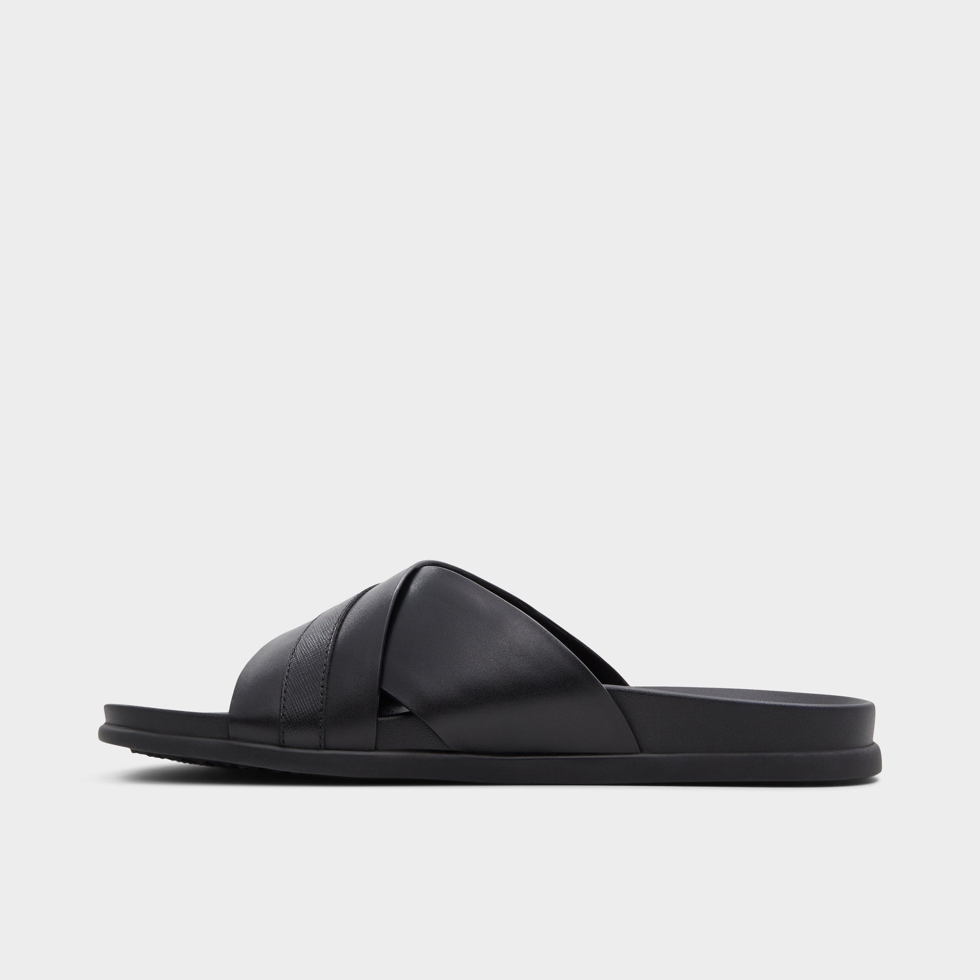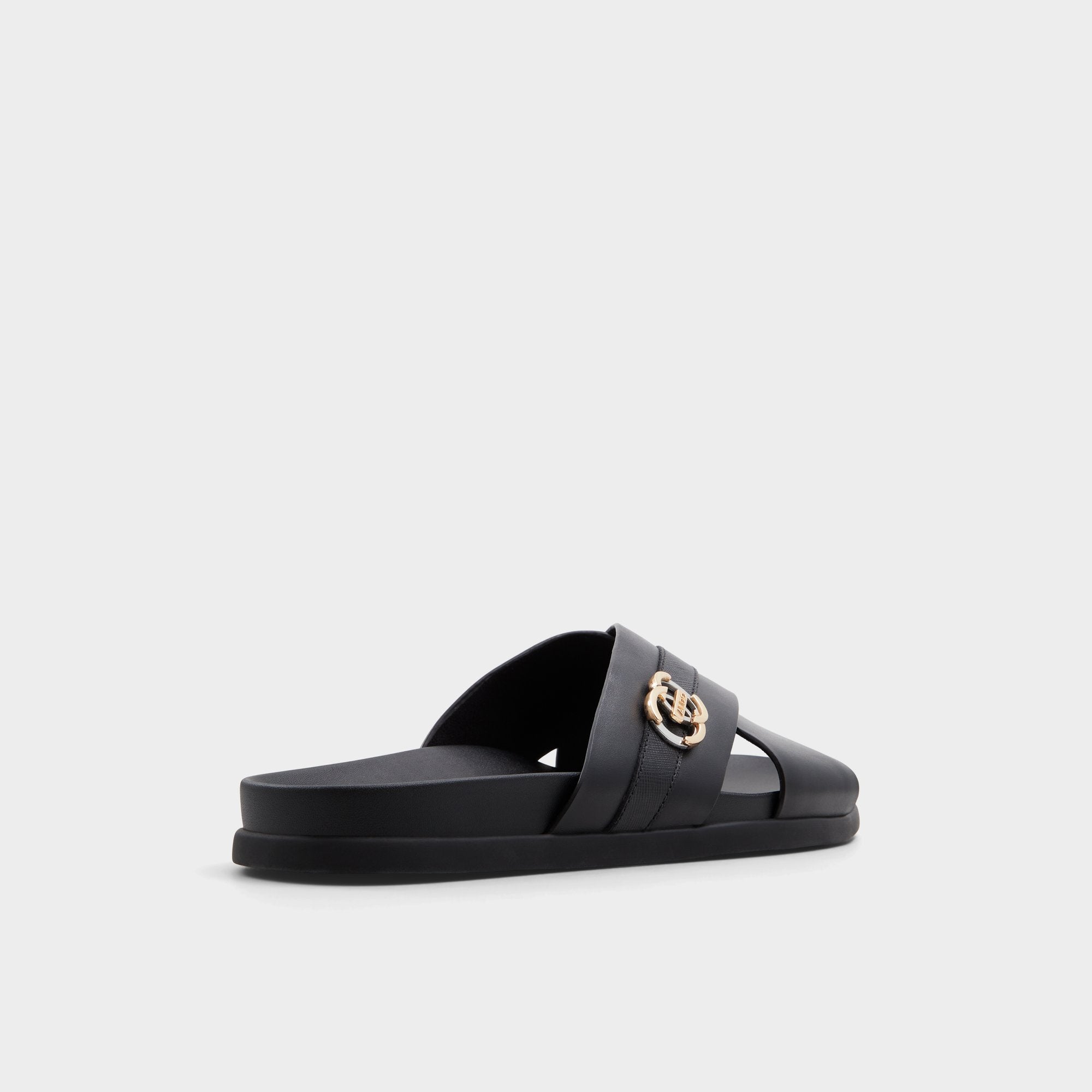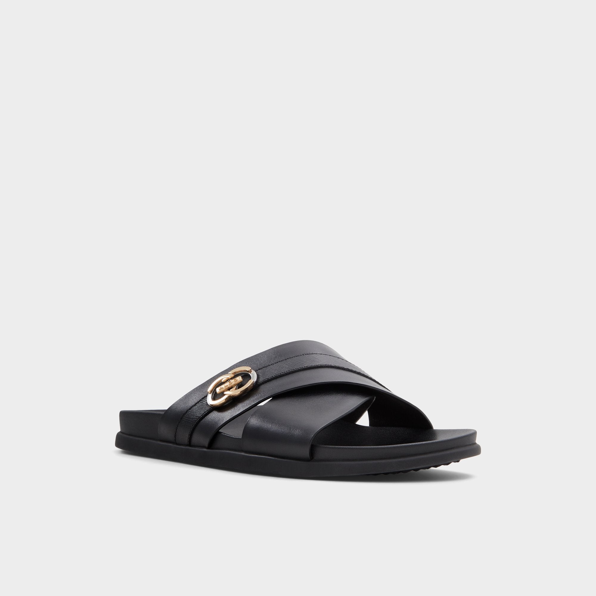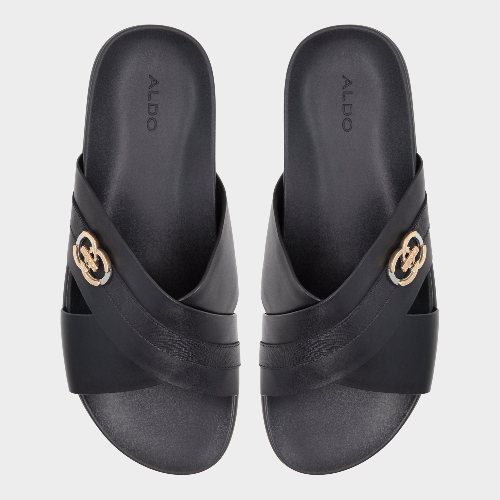 Who said slides had to be boring? These easy on, easy off sandals certainly aren't courtesy of a chic metal ornament and a criss-cross design.