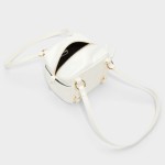 Glossy patent shine catches city lights before you step off the curb, anchored by gold ring buckles on the slim shoulder strap of this compact carry zipping essentials into night-ready style. Pair it with bias-cut slips for rooftop drinks or sling over cargo pants on late-night coffee runs.