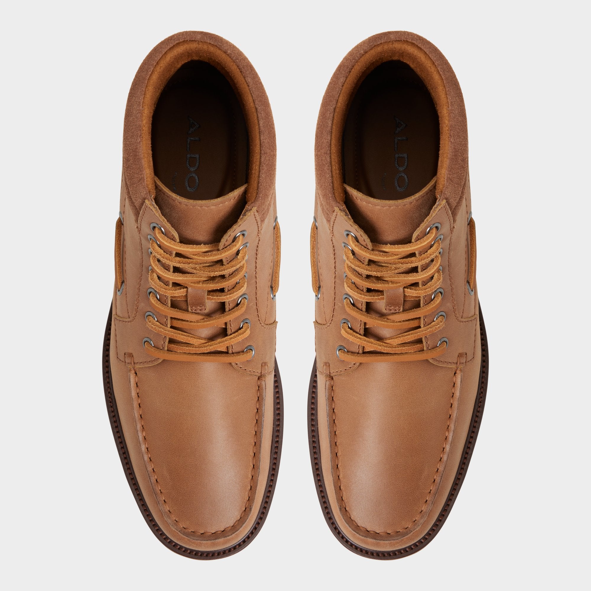 Brown leather features topside lacing and metal grommets reminiscent of classic deck shoes, while a suede collar and a lugged rubber outsole guarantee comfort in every step. Pair with cuffed selvedge denim for weekend market strolls or team with wool trousers on casual Fridays-the boat-lace detail straddles the line be