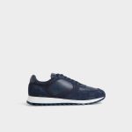Midnight-blue suede pairs with smooth leather panels on this jogger, catching light across contrast textures as a cushioned rubber sole keeps daily miles easy and the silhouette ready for coffee runs or longer city strolls. Team it with cuffed chinos for patio brunches, or roll with jogger pants on red-eye flights.