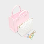 Pillow-soft marshmallow-pink panels frame this petite tote, with clean vertical seams and a flower-and-heart charm that adds playful mood as you go about your day, from morning coffee to sunset strolls. Carry it with linen pants for cafe mornings, or sling it with a sundress and sandals for outdoor dining.
