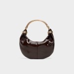 Moon-shaped silhouette, glossy patent leather arches over a sculptural gold handle wrapped in rings like stacked bangles, turning everyday elegance into a carefree statement for city nights and weekend wanderings alike. Tuck it under a tailored blazer for post-work drinks, or sling it over a silk slip at rooftop partie