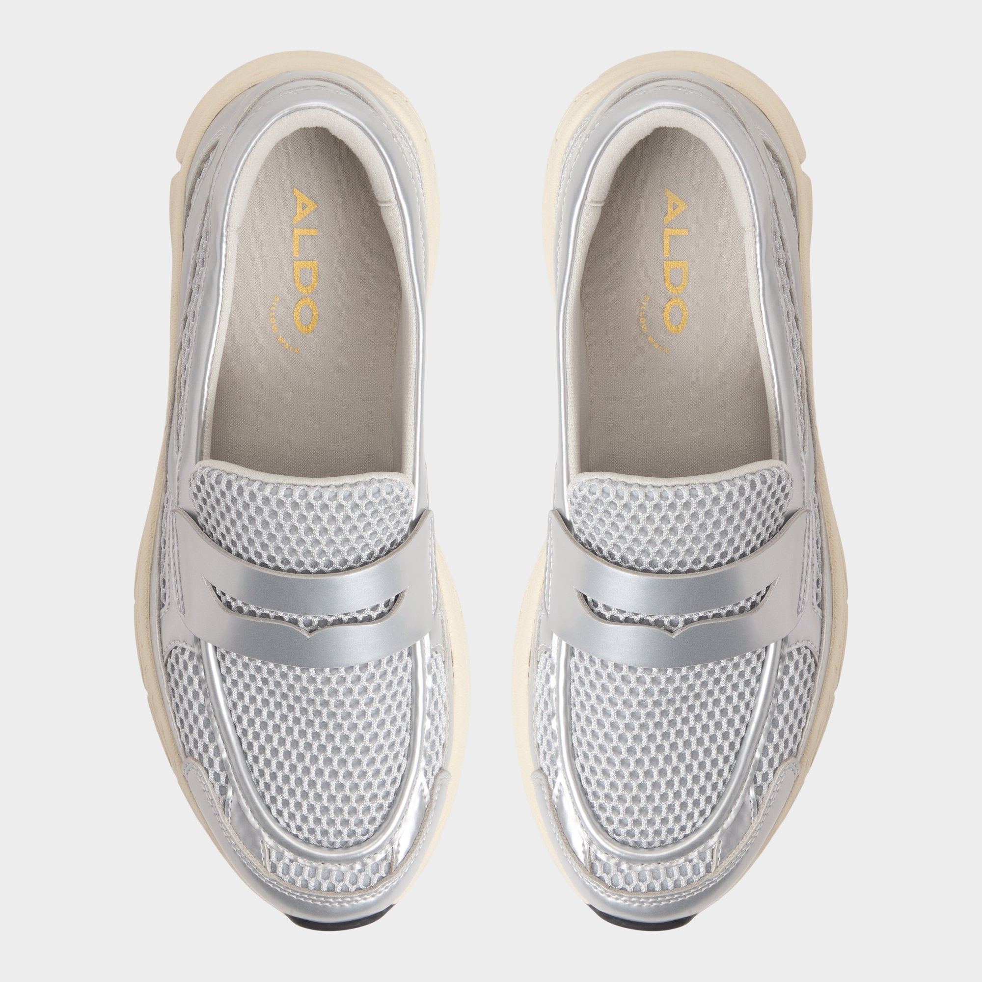 A shiny silver upper combined with airy mesh and a bouncy jogger sole offers loafer comfort with sneaker energy, making coffee runs and late-night strolls feel light. Pair with cuffed chinos for presentations or slip into a satin skirt when rooftop tacos lead to karaoke.