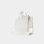 Crisp square lines in white leather give this tote a gallery-meets-office vibe, with a pyramid-pouch charm and a convertible gold chain strap that shift hand carry into sleek cross-body ease. Pair it with a tailored blazer for desk hours or sling over jumpsuits at airport check-ins for fresh silhouettes sealing every l