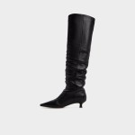 Endless leather ascends past the knee to end in a poised kitten heel so each entrance feels intentional, while soft lining and flexible shaft keep every stride effortless from crosswalk dash to late-night cab hail. Pair with a sweater-dress for brunch that runs overtime, or swap in sleek leggings when gallery nights ca
