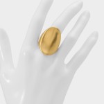 A mirror-smooth dome rises from an asymmetric band, creating an uninterrupted curve that captures the eye. Stack it with rings for errands, wear it solo with slips at gallery openings, and mirror the look with a chain or bracelet as the day shifts to evening.