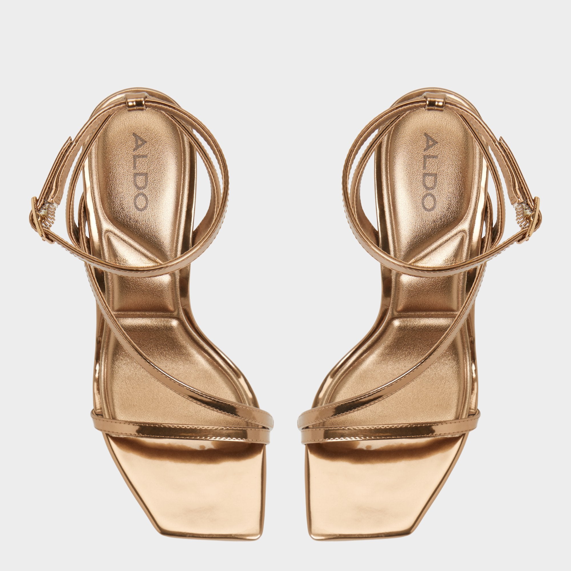 Mirror-gloss metallic straps cross elegantly over squared toes, while sculpted stiletto heels offer poise for cab exits and candlelit entrances, catching city lights with every confident step and elevating evenings with a subtle shimmer. Pair with tux trousers for gallery nights, or team with a satin midi for cocktails