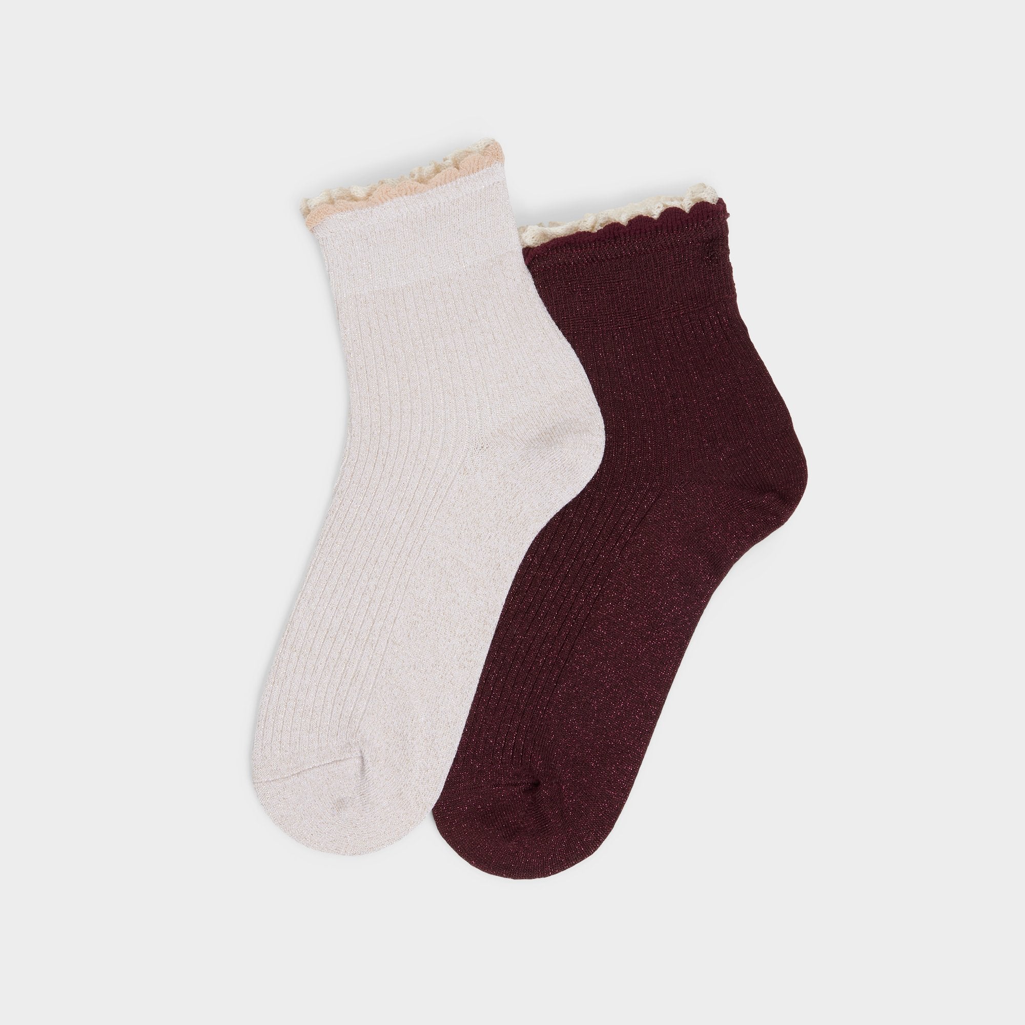 Two-toned ribbing creates scalloped edges that catch the eye as you move, turning these socks into a playful moment you can wear all day. Pair them with loafers for campus runs, or stack under a skirt and sneakers for weekend errands.
