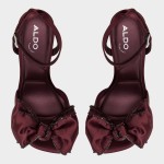 Deep burgundy satin winds into sculpted ruffles at the open toe, elevated by a sharp stiletto silhouette and cushioned by a leather-lined interior that keeps elegance steady from first click of the evening to the last sashay. Pair with silky slip dresses for cocktail parties or ground tailored jumpsuits when gallery op