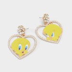 Forever a flirt. Tweety Bird's iconic charm doubles in this pair of stoned heart-shaped earrings that will add a playful, flirty touch to any look.?