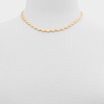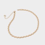 Liquid-looking wavy links ripple around the neck, catching flickers of light with gold-plated shine and an extender chain that morphs from choker to collar. Layer it over a ribbed tank and jeans for coffee runs, or top a satin slip at rooftop drinks to finish the moment.