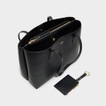 Matte faux-leather meets slender shoulder straps on a roomy tote, balancing city polish with everyday ease, while a detachable gold-ringed zip-top pouch frees hands for coffee runs and quick errands on busy mornings. Carry it with a blazer for desk hours or sling it with denim on weekend jaunts, finishing every outfit